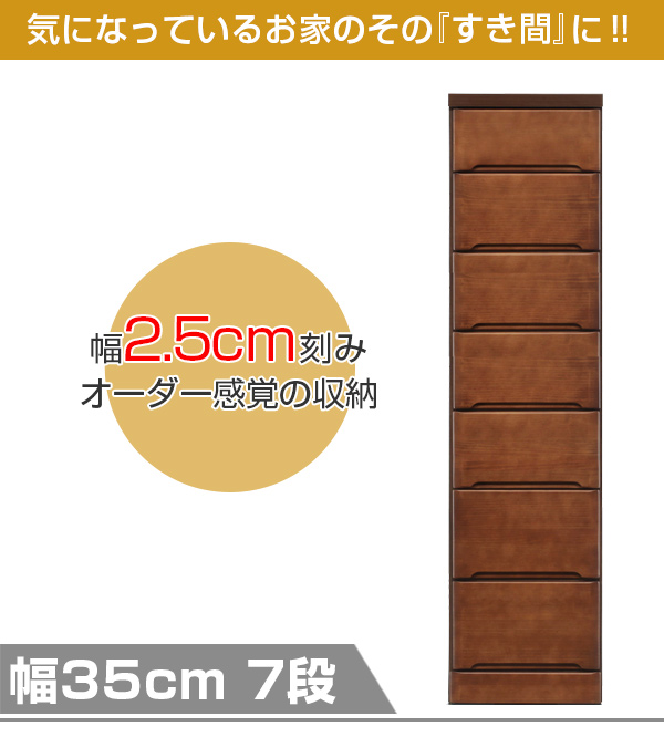 スリムチェスト 7段 すき間収納 引き出し 木製 幅35cm ( タンス チェスト ランドリーチェスト 整理タンス 完成品 収納 隙間 すきま 整理 衣類収納 )