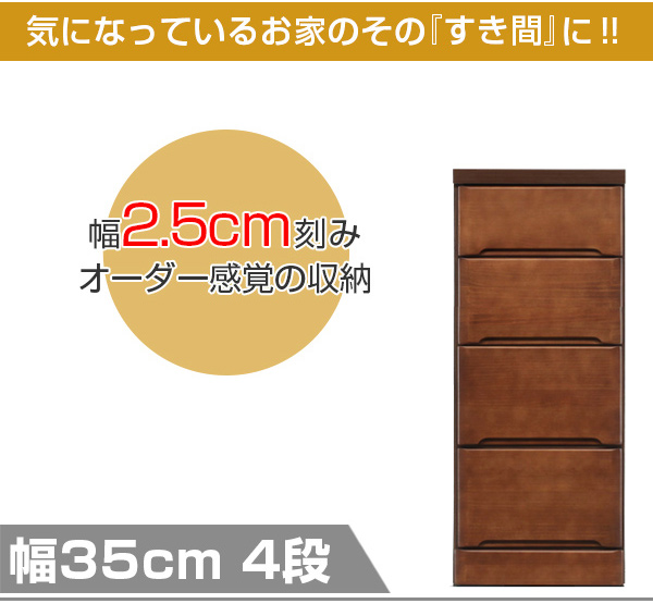 スリムチェスト 4段 すき間収納 引き出し 木製 幅35cm ( タンス チェスト ランドリーチェスト 整理タンス 完成品 収納 隙間 すきま 整理 衣類収納 )