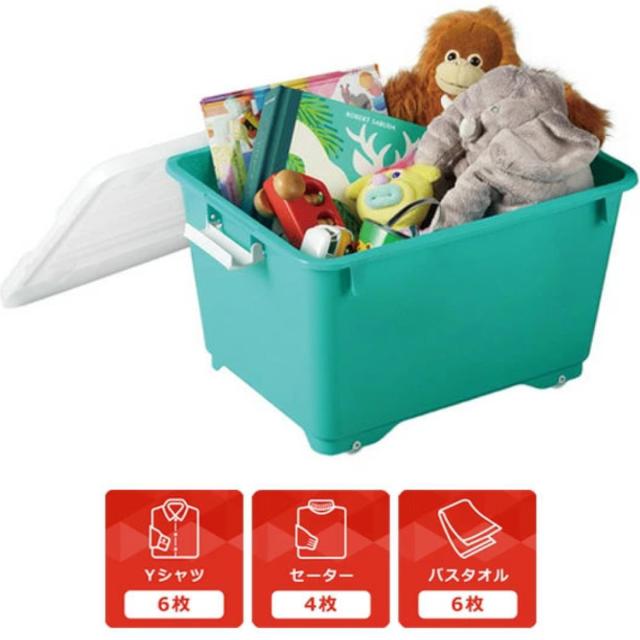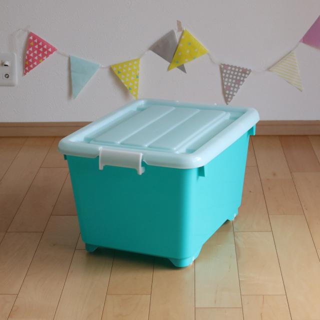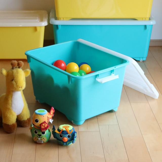 収納ボックス ふた付き 同色2個セット 約 幅39×奥行50×高さ30cm フォーシービビッド グリーン ( おもちゃ 収納 収納ケース おもちゃ箱 2個 子ども部屋 深型 衣類 衣装ケース スタッキング 積み重ね キャスター付き )