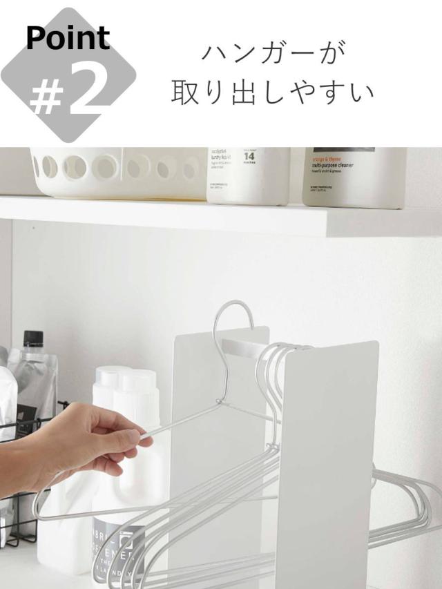 ハンガーを引っ掛けて収納するハンガー収納ラックです。ハンガーをまとめて収納すれば、洗濯物を干す際に取り出しやすくとても便利です。人気の「tower」シリーズはランドリールームを清潔感のある雰囲気に演出し、見せる収納ができます。