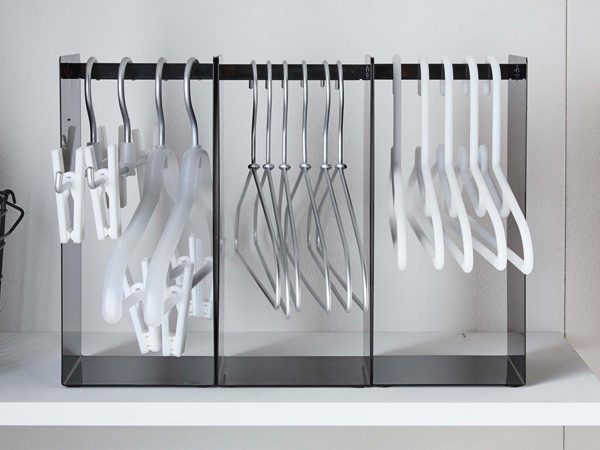 収納ラックを複数個並べてハンガーの種類や大きさ別で分けて収納すれば、すぐにお目当てのハンガーが見つけられるのでおすすめです。