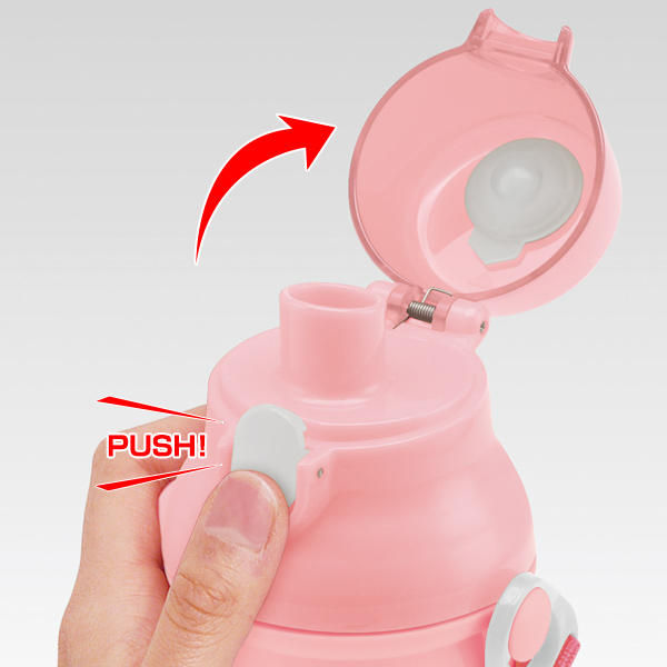 水筒のフタはボタンを押すだけでで開けることができるワンタッチ式です。小さなお子様でも簡単に開けられます。