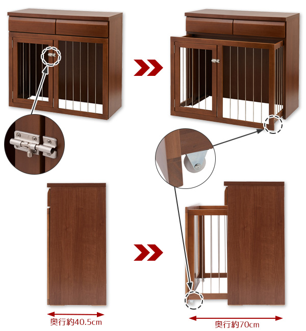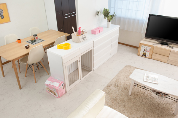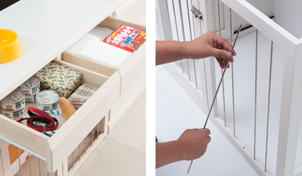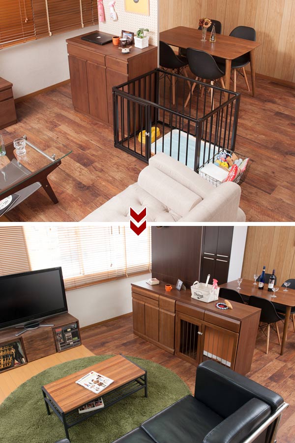 普段は収納キャビネット、必要なときだけ広げるペットケージ