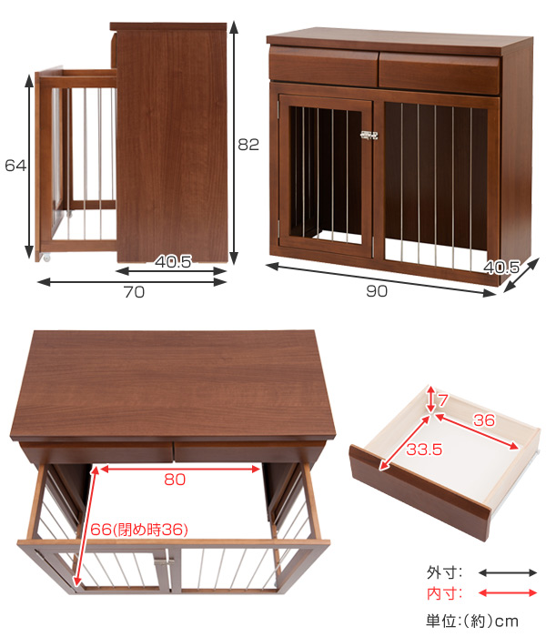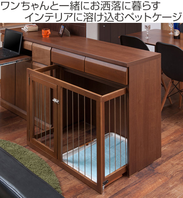 ペットケージ 家具調 スライド式サークル 天然木 幅90cm ( ペットサークル ケージ ハウス ペット ペット用品 ゲージ 日本製 完成品 木製 収納 引き出し 省スペース 小型犬 中型犬 )