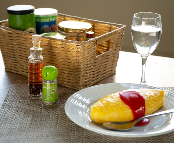 お食事に必要な調味料やツールをまとめておくと、バスケットごとサッと出せて片付けも楽にできます。
