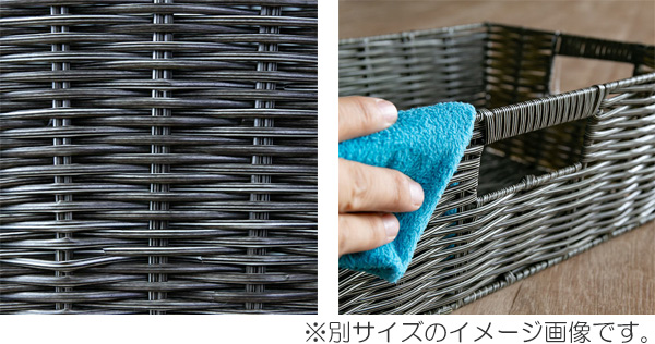 本体素材には軽くて丈夫なポリプロピレンを採用しています。ツルッとした質感で水に強く、汚れてしまった時にサッと拭けるのでお手入れが楽にできます。(※耐水性に特化した商品ではありません。)