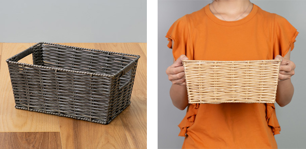 散らばりやすい小物をまとめるのに最適な小さめサイズの収納バスケットです。