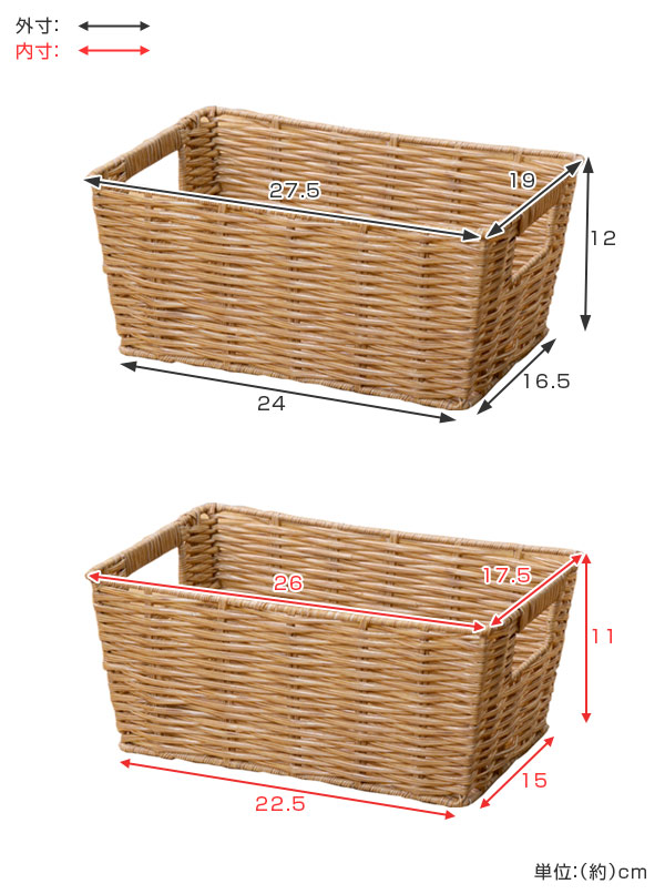 バスケット 収納ボックス 約 幅19×奥行28×高さ12cm ラスティー クォーターサイズ ( 収納 かご カゴ 小物入れ 収納ケース 小物収納 水に強い 丈夫 インナーボックス 籠 カラーボックス収納 バスケット収納 リビング 卓上収納 )