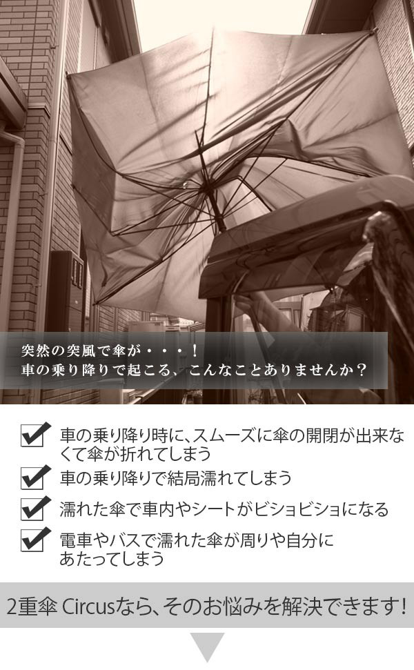 特殊な2重構造で水滴に触れずに使える人気の2重傘