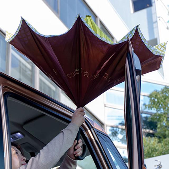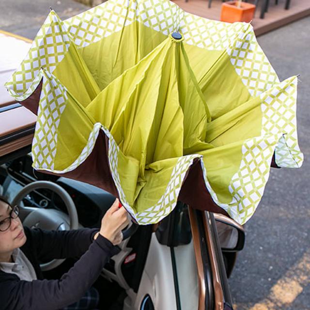花のつぼみのように逆さに開くので、車の乗り降り時にスムーズに傘の開閉が出来ます。