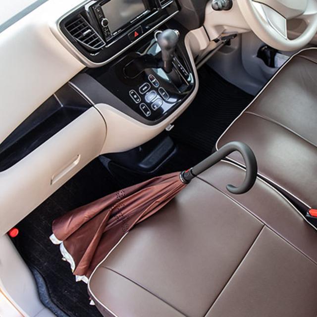 濡れた傘でシートがビショビショになる問題も、濡れた面を内側にすることで解決してくれます。