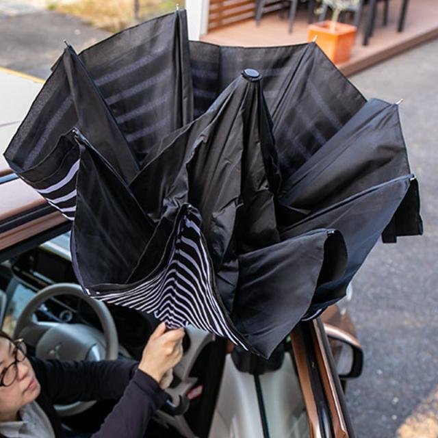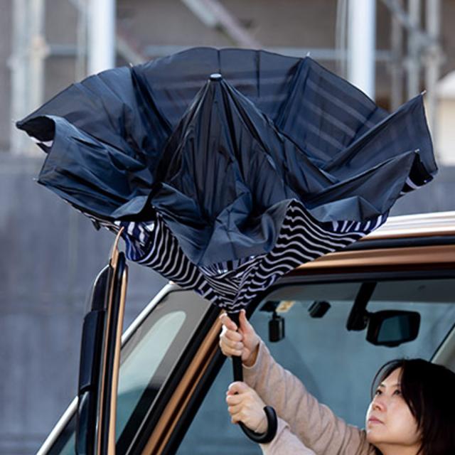 花のつぼみのように逆さに開くので、車の乗り降り時にスムーズに傘の開閉が出来ます。