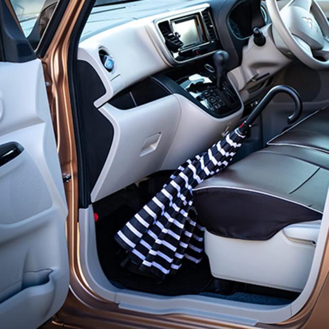 濡れた傘でシートがビショビショになる問題も、濡れた面を内側にすることで解決してくれます。