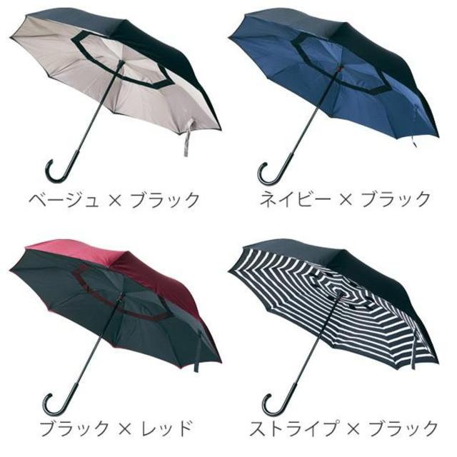 傘 晴雨兼用 逆さに開く2重傘 circus サーカス 長傘 二重傘 ベージュ×ブラック ( カサ かさ 雨傘 日傘 アンブレラ UV対策 通勤 通学 洋傘 晴雨傘 2重構造 2重傘 逆開き傘 逆さ傘 さかさま傘 逆傘 レイングッズ )