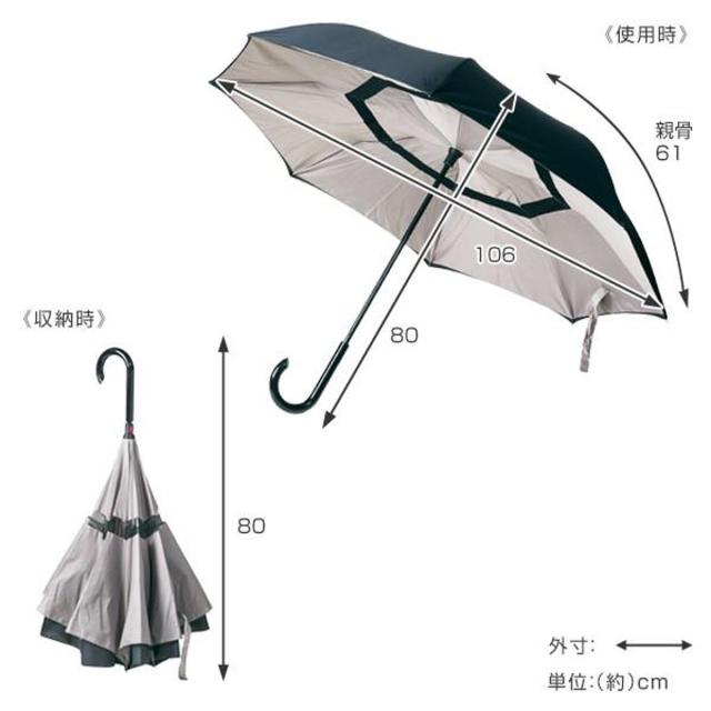 | サイズ | 使用時 全長:約 80(cm)、親骨の長さ:約 61(cm)、直径:約 106(cm) 収納時 全長:約 80(cm) |