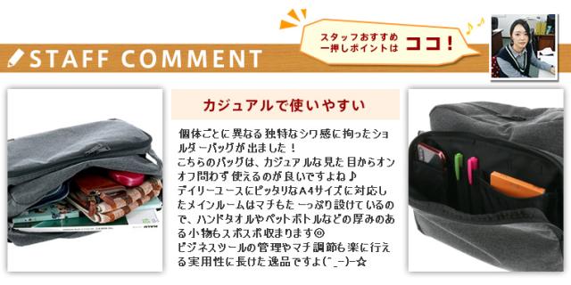 | 備考 | 【メイン開閉】ダブルファスナー 外側/ ファスナーポケット×1(中にオープンポケット×2、ペン挿し×2) ホックポケット×1(中にマジックテープ式ポケット×2) 内側/ ボトルホルダー×1 ファスナーポケット×1 ※マチ調節ベルト有 | ||
