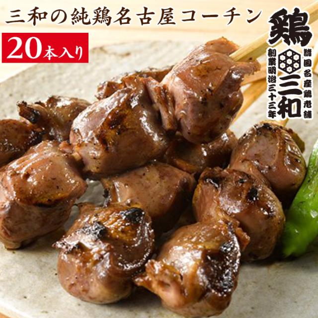 焼鳥 三和の純鶏名古屋コーチン 砂肝焼鳥串(20本) 鶏三和 未加熱 地鶏 鶏肉 送料無料