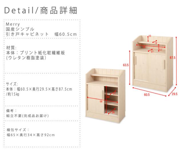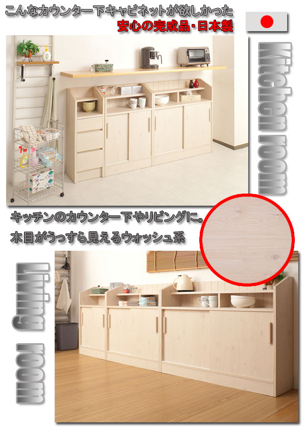 Merry メリー 国産シンプル引き戸キャビネット (カウンター下,リビング 収納,白,完成品,ナチュラル,おしゃれ)