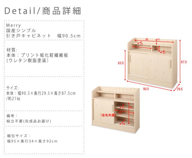 Merry メリー 国産シンプル引き戸キャビネット 幅90.5cm
