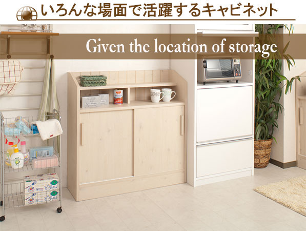 Merry メリー 国産シンプル引き戸キャビネット 幅90.5cm (カウンター下,リビング 収納,白,完成品,おしゃれ)