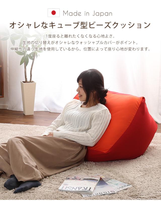 ジャンボなキューブ型ビーズクッション・日本製(Lサイズ)カバーがお家で洗えます | Guimauve-ギモーブ-