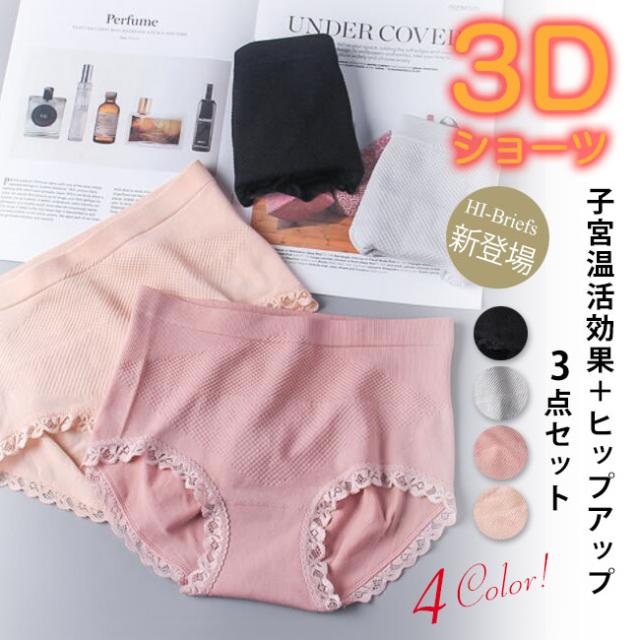 3枚セット!子宮温活効果!3Dショーツ 選べる4カラー♪