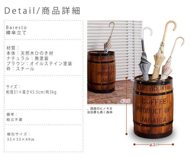 Baresto バレスト アンブレラスタンド (たる タル 木樽 傘立て ひのき 桧 檜 収納ボックス カントリー バレル)