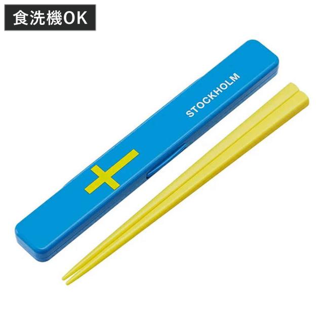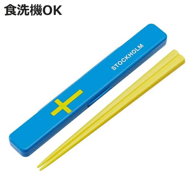 箸&箸箱セット ストックホルム 国旗 音の鳴らないクッション付き 19.5cm ( 箸 お箸 箸箱 セット 食洗機対応 大人用 日本製 食洗機OK 音が鳴らない カトラリーセット 持ち運び 携帯 カトラリー お箸セット 通勤 通学 )