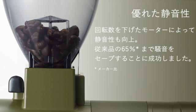 「粒度の安定化」、「静音性」と従来のコーヒーミルに改善点を加えた次世代機です。