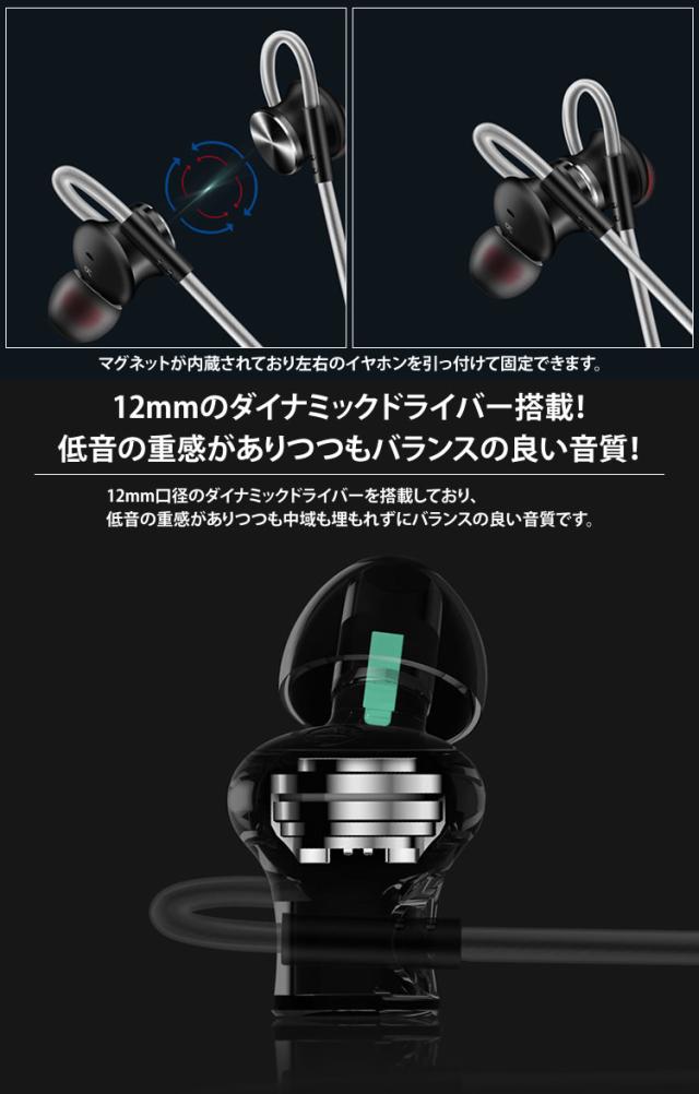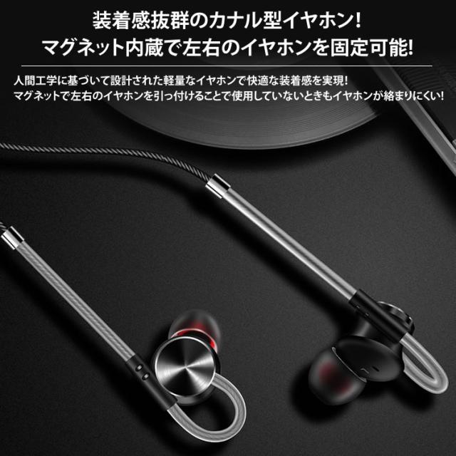 マグネットで左右のイヤホンを引っ付けることで使用していないときもイヤホンが絡まりにくい!