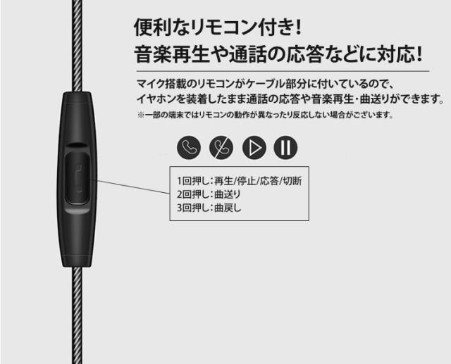 マイク搭載のリモコンがケーブル部分に付いているので、イヤホンを装着したまま通話の応答や音楽再生・曲送りができます。