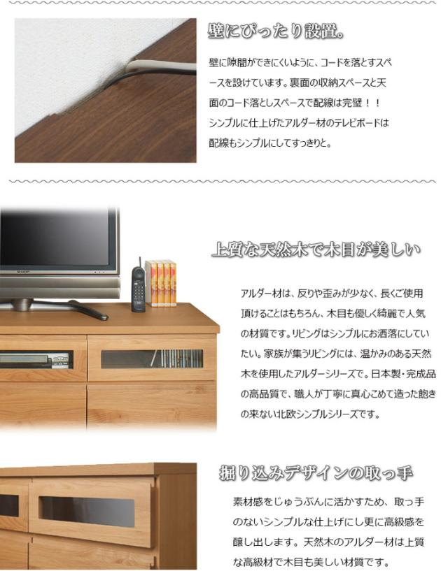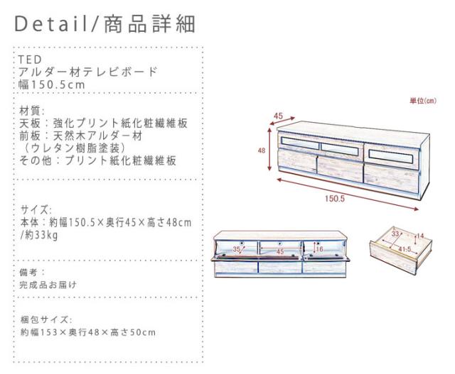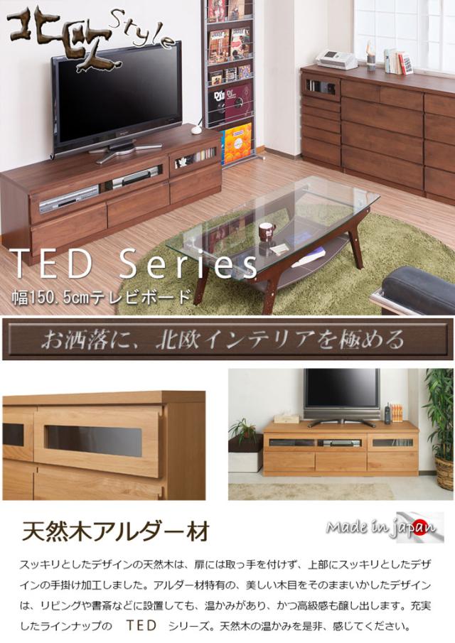 TED テッド アルダー材テレビボード 幅150.5cm (国産 木製 TV台 ローボード 天然木 完成品 ブラウン 北欧 ナチュラル)