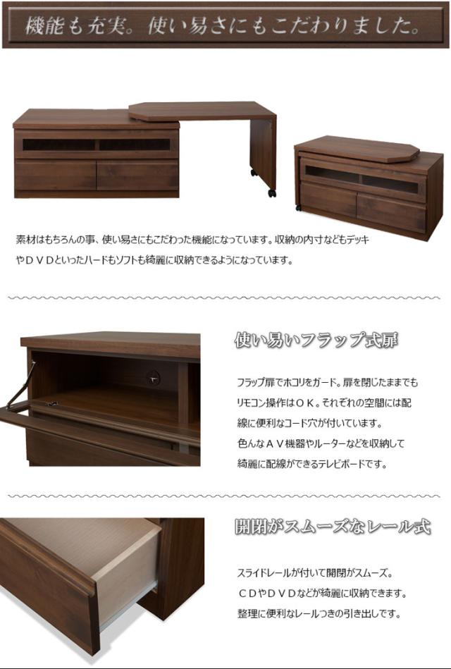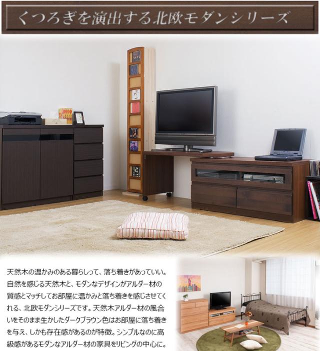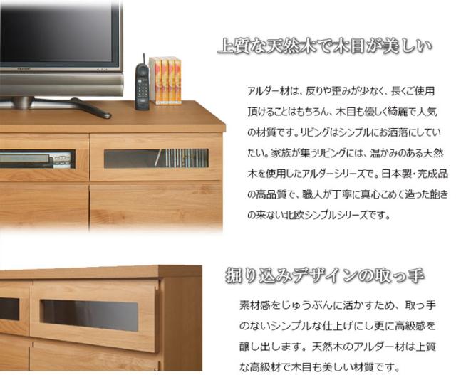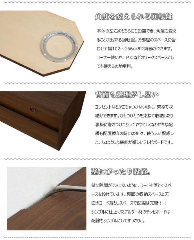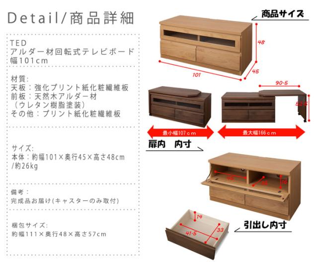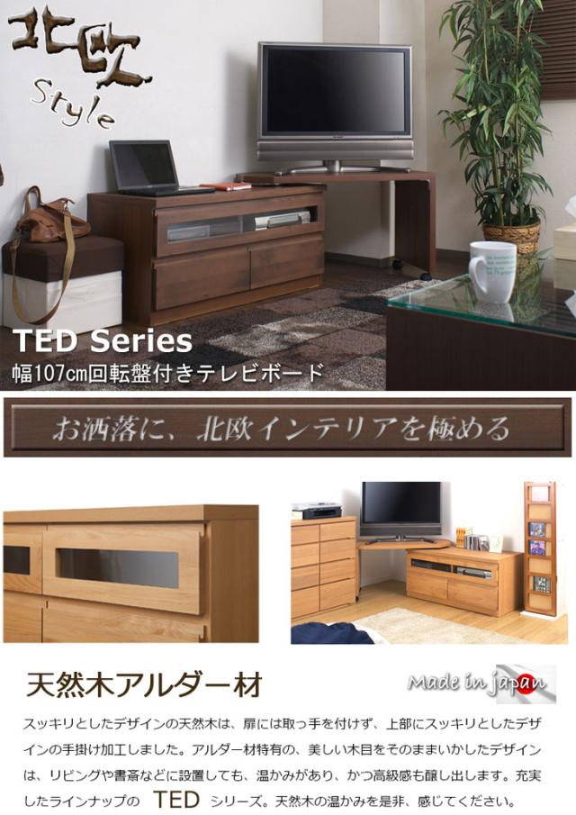 TED テッド アルダー材回転式テレビボード 幅101cm (国産 木製 TV台 ローボード 天然木 完成品 ブラウン 北欧 ナチュラル)