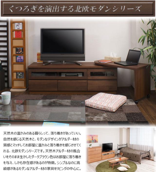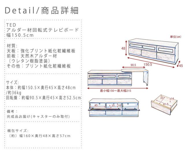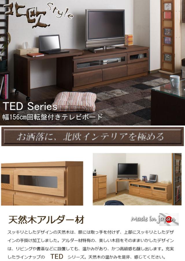TED テッド アルダー材回転式テレビボード 幅150.5cm (国産 木製 TV台 ローボード 天然木 完成品 ブラウン 北欧 ナチュラル)