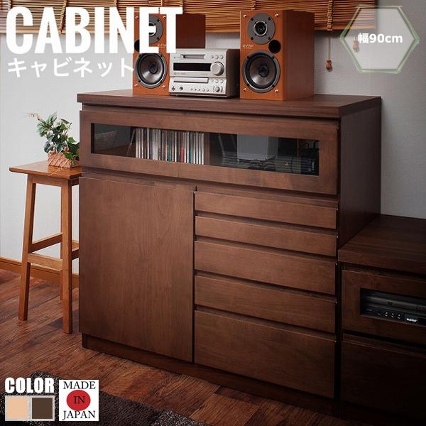 TED テッド FAX台&キャビネット 幅90cm (国産 木製 チェスト リビング収納 天然木 完成品 ブラウン 北欧 ナチュラル)