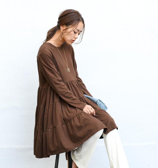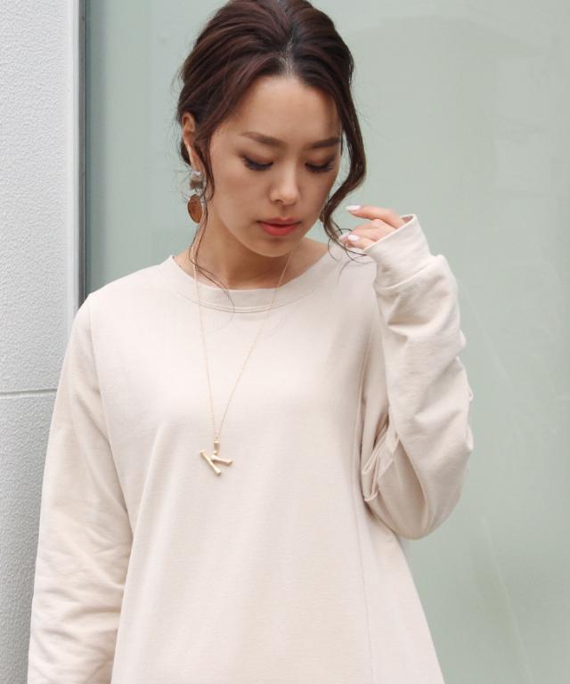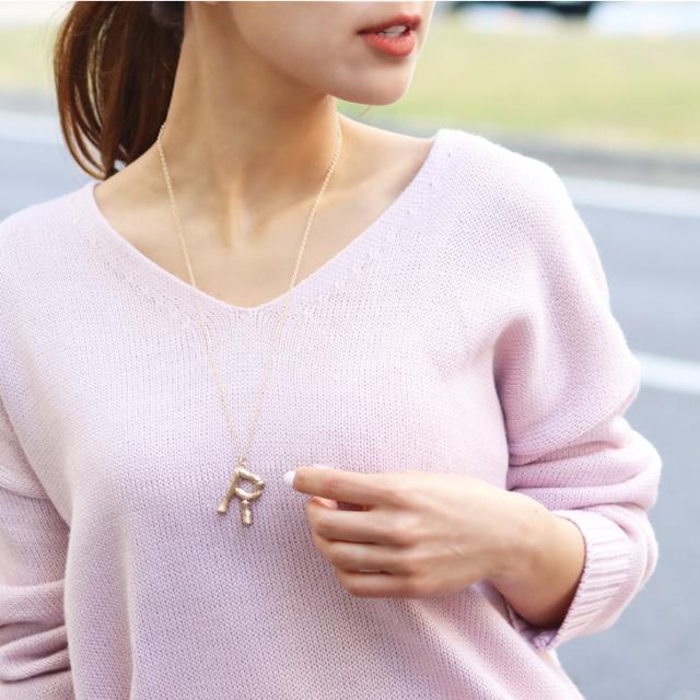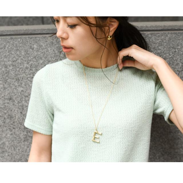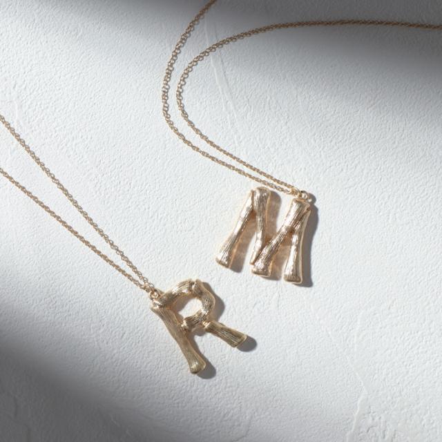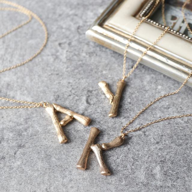 ●ウッドモチーフの上品に輝くアルファベット文字が存在感のあるネックレス