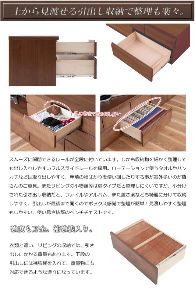 TED テッド ベンチチェスト 幅119.5cm (国産 木製 チェスト 引出し 多収納 リビング収納 天然木 ブラウン 北欧 ナチュラル)