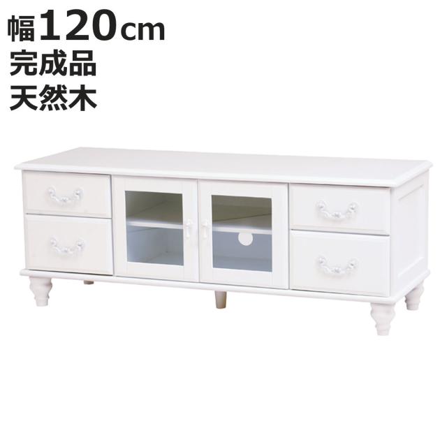 テレビ台 ローボード TV台 姫系 ロマンチック ろくろ脚 幅120cm ( テレビボード テレビラック TVボード 完成品 AVラック AVボード 木製 引き出し 開き戸 収納 )