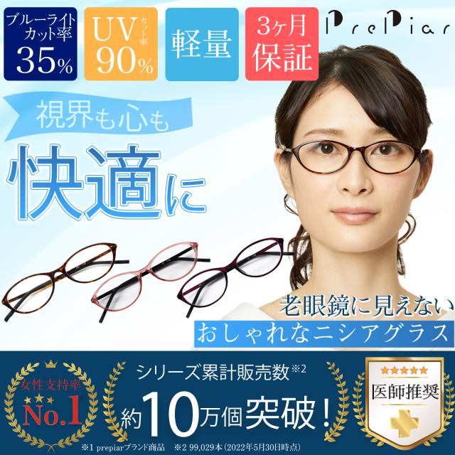 老眼鏡 おしゃれ シニアグラス ブルーライトカット フォックス 上品 軽量 コンパクト 紫外線カット UVカット レディース 3か月保証 PrePiar 【121】