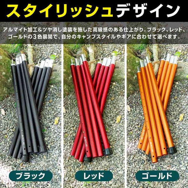 キャンプなどのアウトドアシーンで、テントやタープを張る際に欠かせないポールです。
