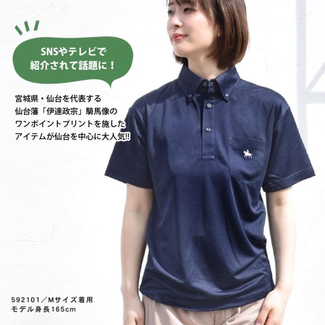伊達政宗 ポロシャツ レディース メンズ 半袖 トップス ボタンダウン 大きいサイズ ポケットあり ポケットなし 吸水速乾 UVカット 仙台 宮城 東北 仙台藩 騎馬像 馬 クールビズ Tシャツ ゴルフ ロング丈 オフィス 白 黒 送料無料 (cab591001)