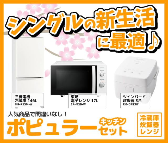 新生活 家電セット 3点 新品 キッチン 冷蔵庫・炊飯器・レンジ ポピュラー シングル 一人暮らし向け
