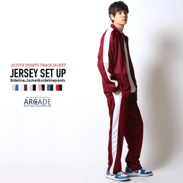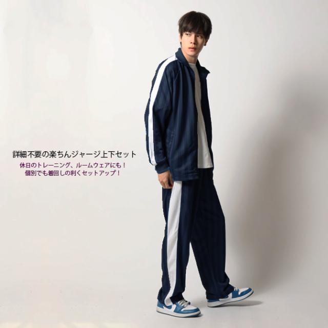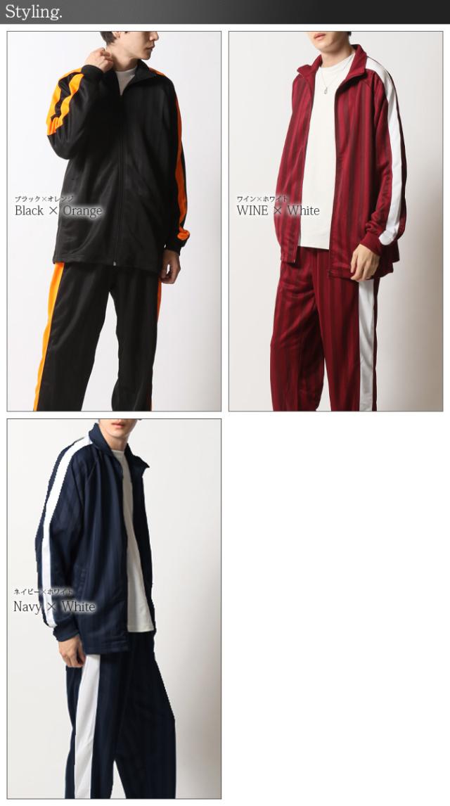 送料無料 上下セット ジャージ メンズ 秋新作 シャドーストライプ トラックジャケット 太ライン ジャージ メンズ