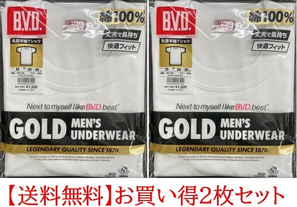 BVD2枚組・丸首半袖シャツG013-2(ゴールド)メーカー希望価格¥2400の品が¥1980と安い!!