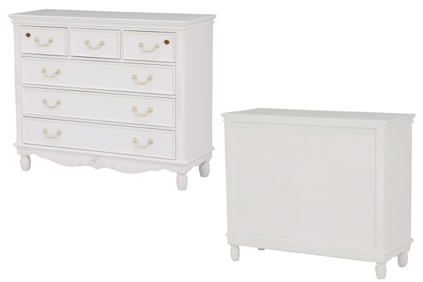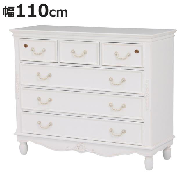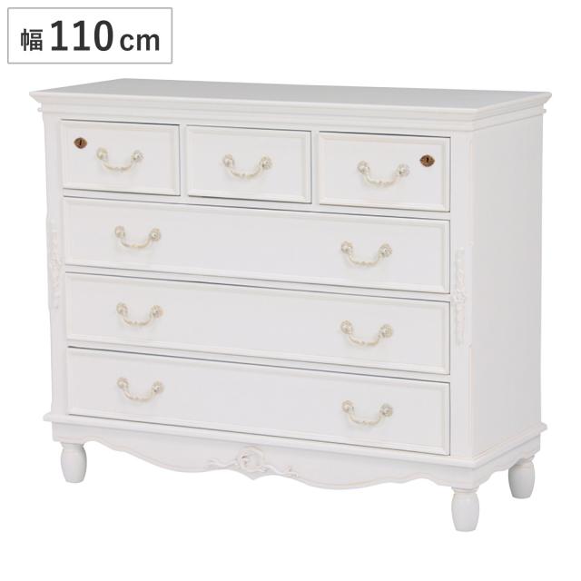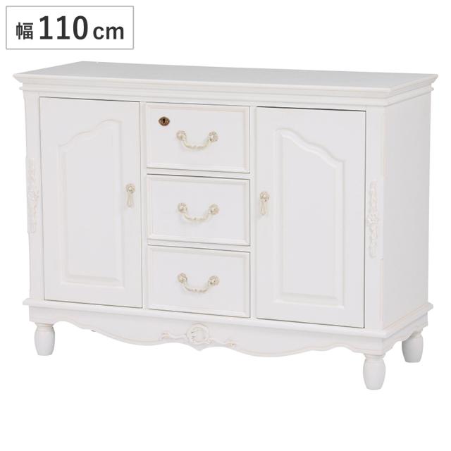 気品漂うエレガントデザインのワイドチェスト 幅110cm美しい曲線と細部にまで施された装飾が魅力のワイドチェストです。上品で優雅なフォルムはワンランク上の空間を演出します。