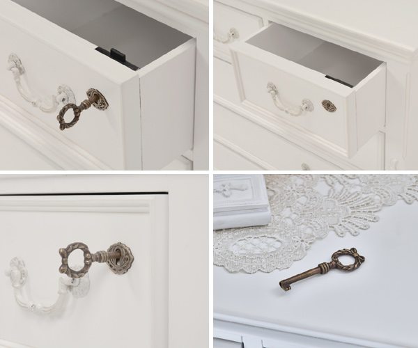 上部の引き出しは鍵付きです。お気に入りのアクセサリーや大切な貴重品も安心して保管できます。