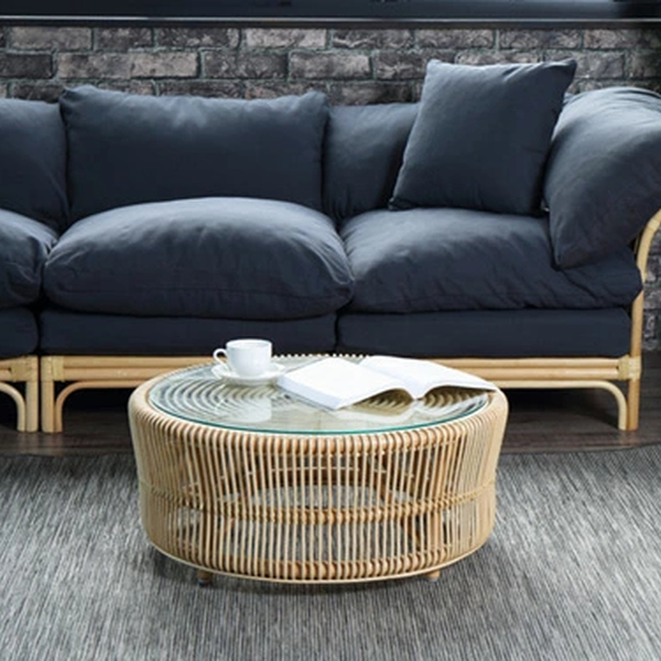円形のラタンフレームが美しいローテーブル。繊細な表情ながら、職人による丈夫な作りで長くお使いいただけます。透け感がある軽やかなデザインで、圧迫感がなくお部屋に馴染みます。