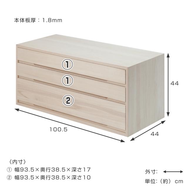 桐タンス 3段 桐収納 日本製 白木仕上げ 幅100cm ( 桐たんす 桐 箪笥 タンス 着物収納 着物 収納 和たんす 和室 国産 完成品 シンプル 洋室 木地 桐製 引き出し 衣類収納 )
