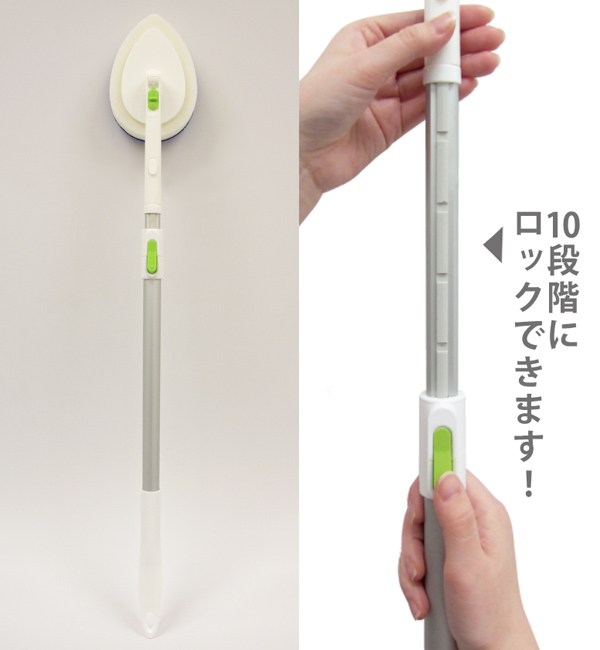 ![]() カチッとロックで使用時にゆるまない 全長約80〜120cmの間で柄の長さをボタン1つで10段階に調節できます。スライドはカチッとロックできるので使用中にゆるんだり回ったりしないから高い所も簡単にお掃除ができます。 |