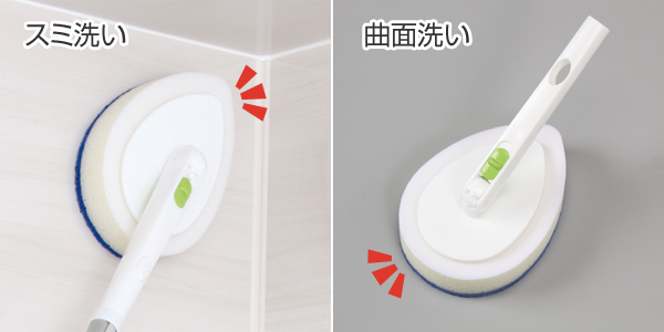 ![]() スミも曲面も洗いやすいしずく型ヘッド しずく型だから柄の角度を変えるとスミや曲面が洗いやすくなります。 |
